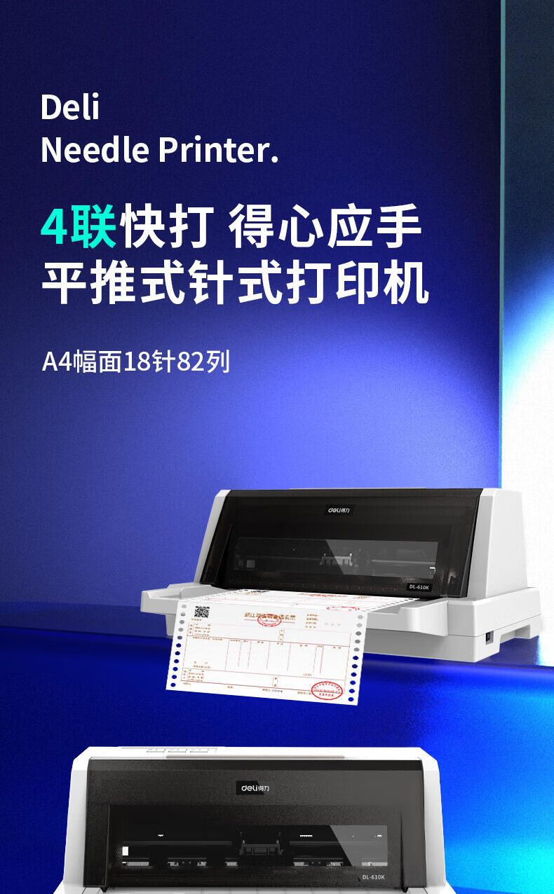 得力(deli) DL-610k针式打印机票据快递单出库送货三联单税控发票增值税票支票送货单打印机票据打印机A4 自营